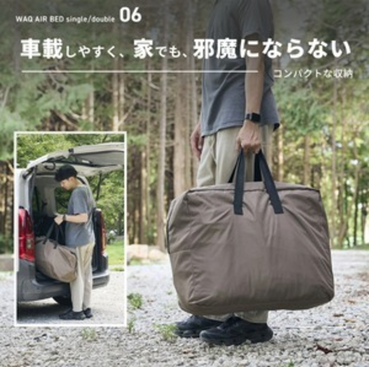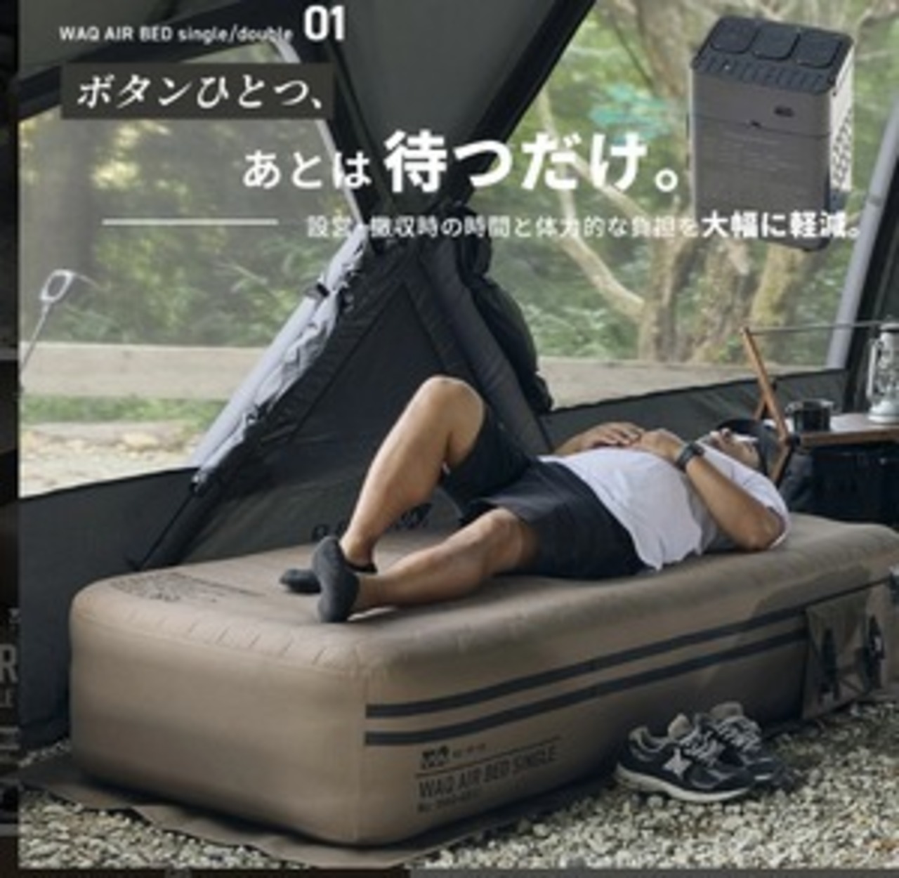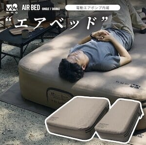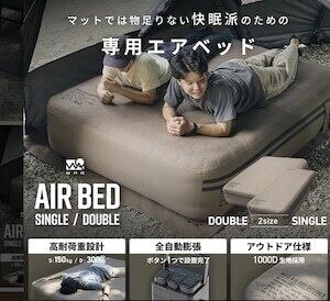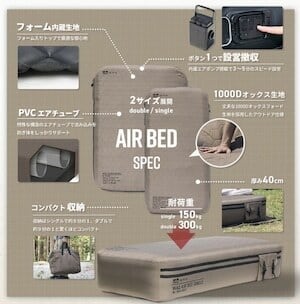 セット内容 ベッド本体/エアポンプ/エアポンプ用充電ケーブル(USB Type-C)/エアポンプ用先端ノズル/補修パッチ2枚/収納袋/取扱説明書
