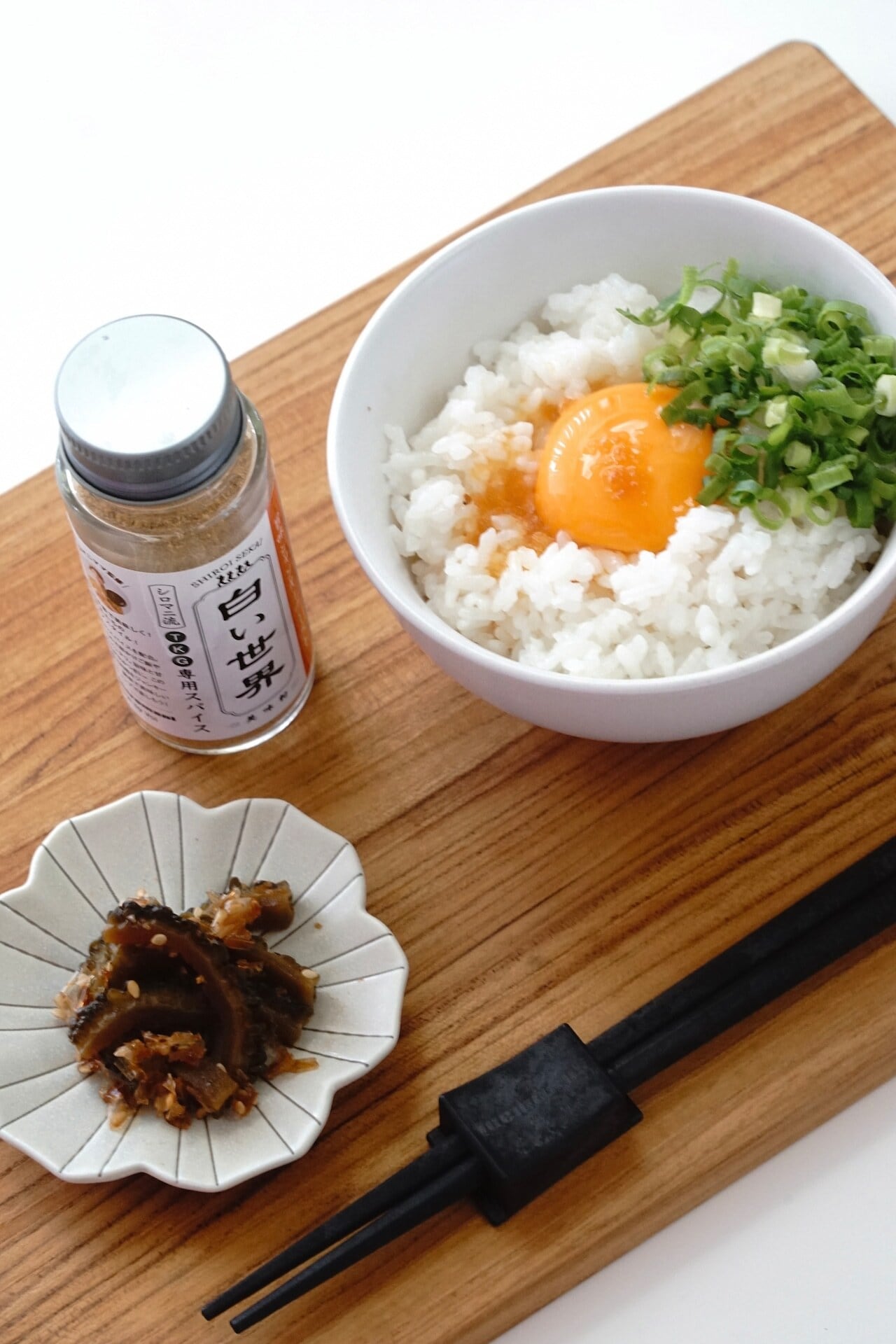 卵かけご飯にたっぷりと白い世界をかけて召し上がってみて下さい。