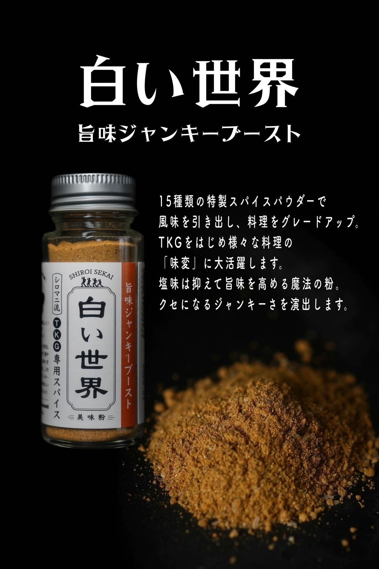 すなわち、TKGだけでなくあらゆる料理に美味しさを加える最強の「味変スパイスパウダー」としてお使い頂けます。
