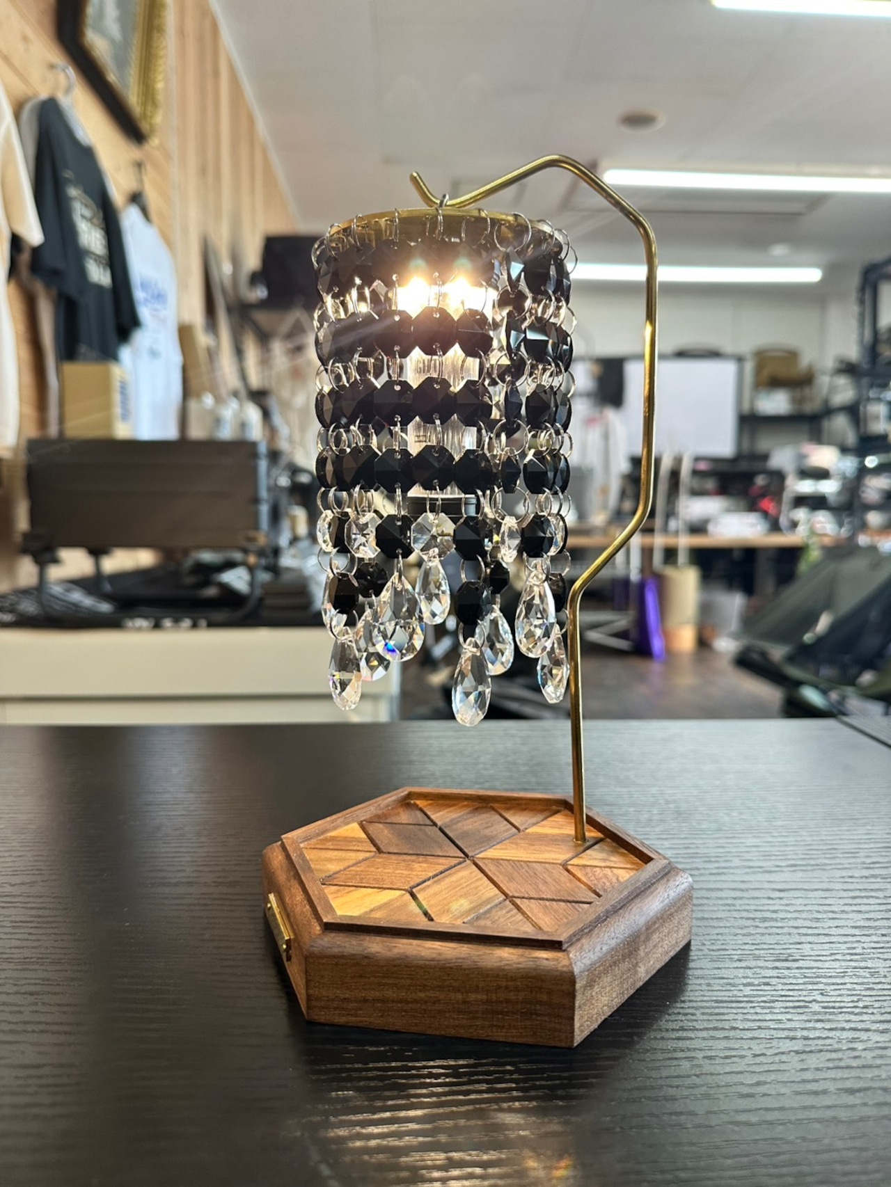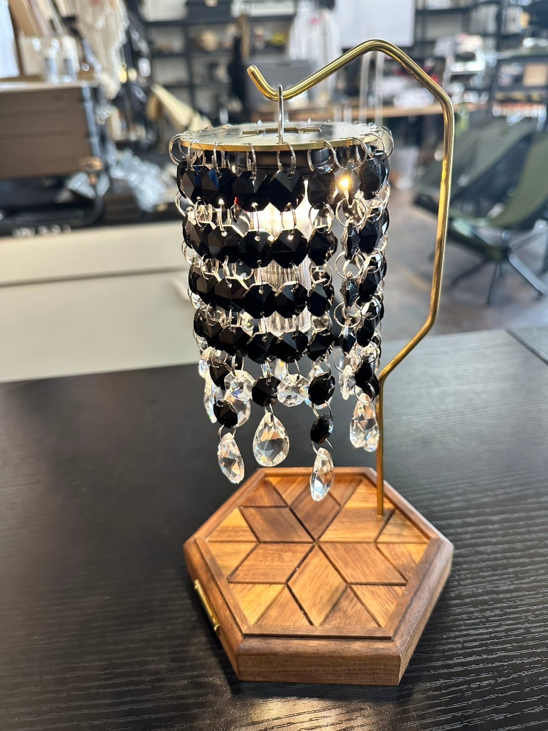 真鍮のプレートにブラックカラーのクリスタルガラスが相性抜群。