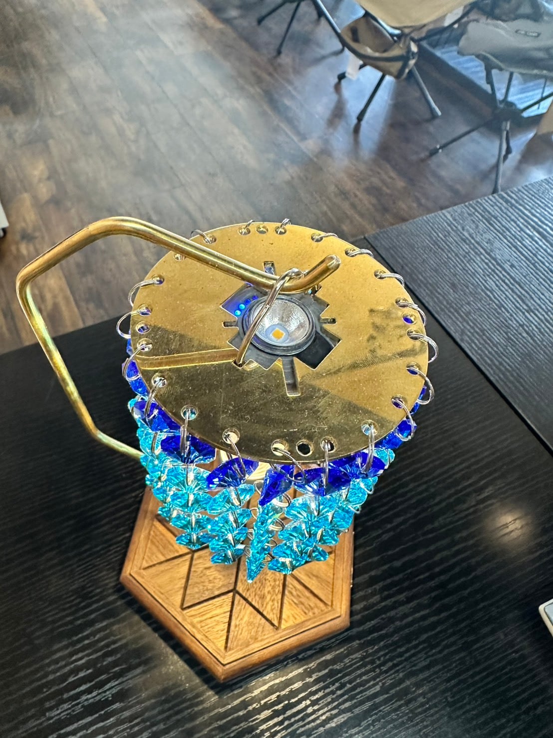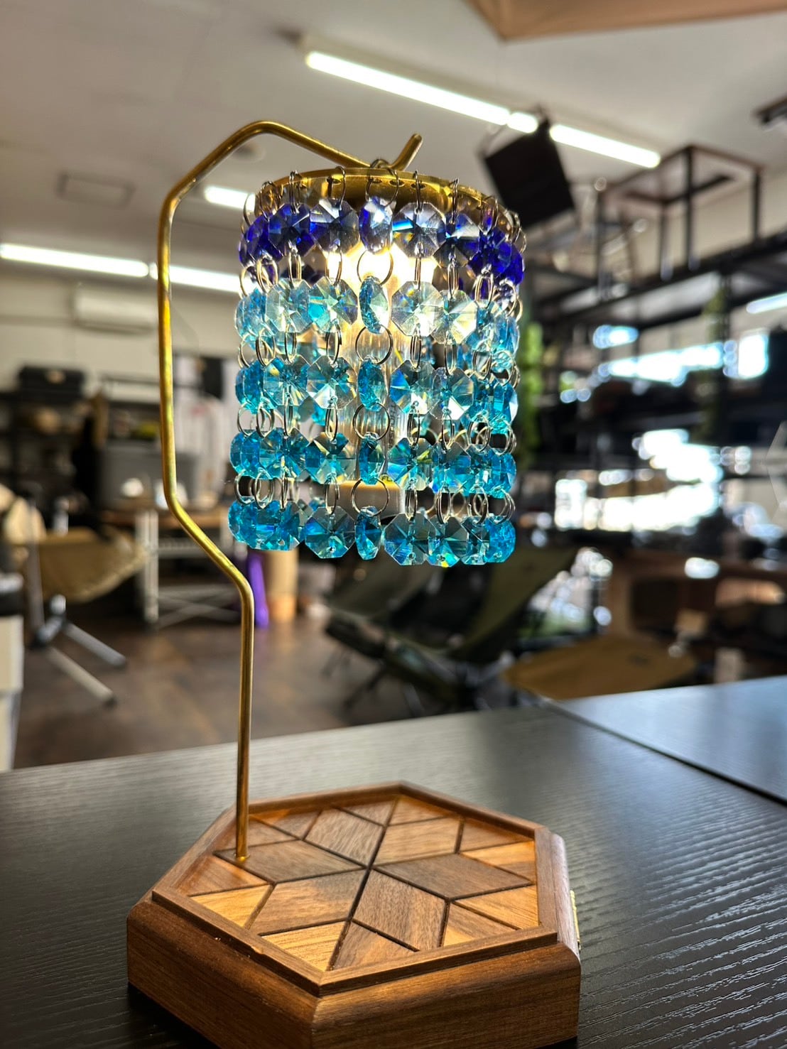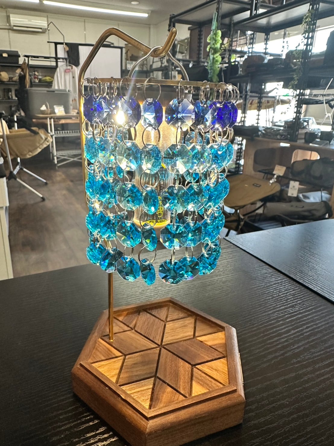 綺麗なブルーカラーのシャンデリアシェード。