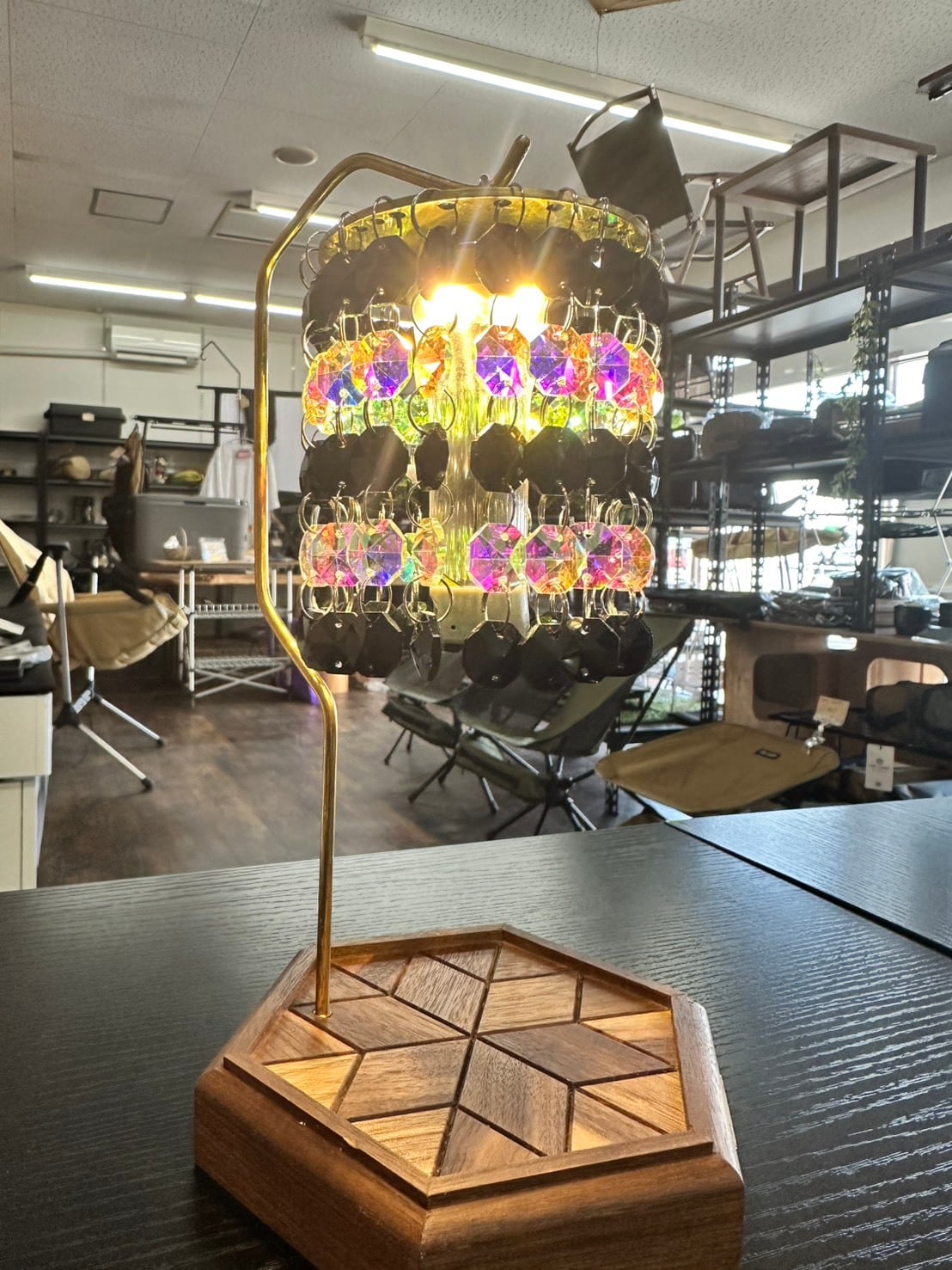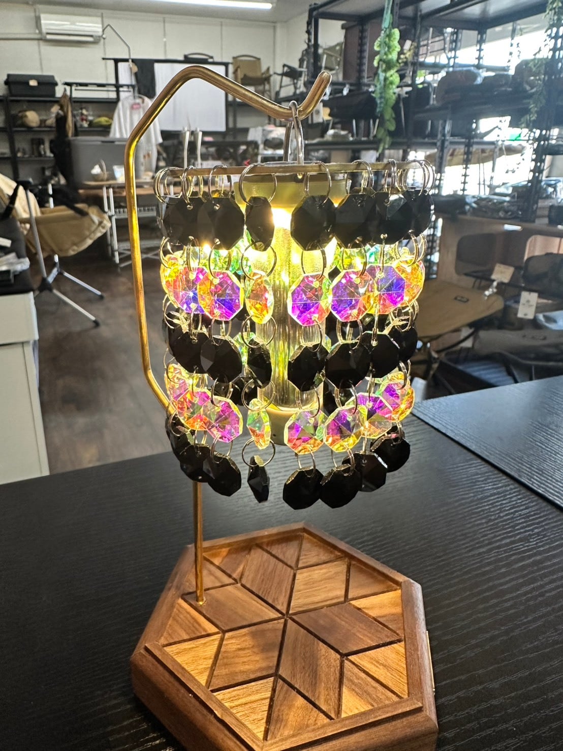 ブラックとオーロラの組み合わせで個性的なシャンデリアシェード。