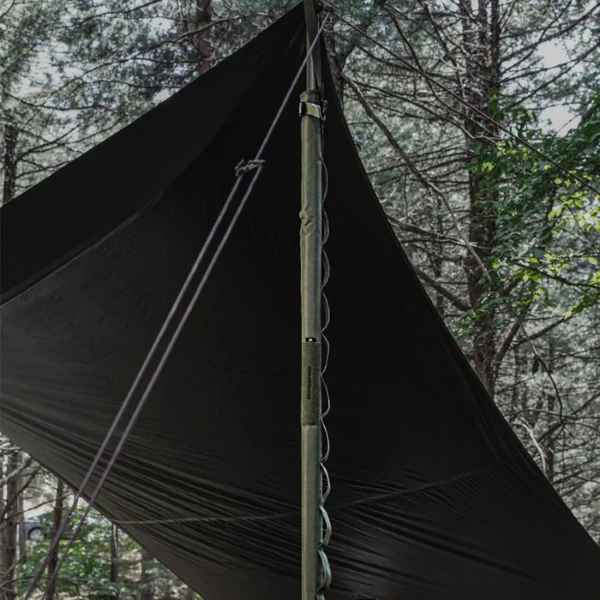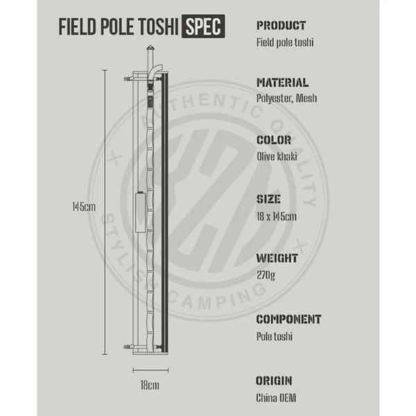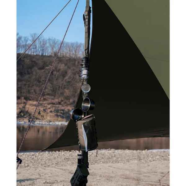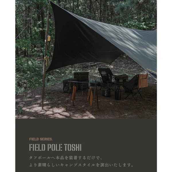 タフポールへ本品を装着するだけで、より素晴らしいキャンプスタイルを演出いたします。 ポールにトッシュを取り囲むベルクロを取り付けた後、ポール先端の◯リングをかけ、固定します。 上部ストラップでお好みの高さに調整することができるタイプですので、簡単に取り付けが可能です。