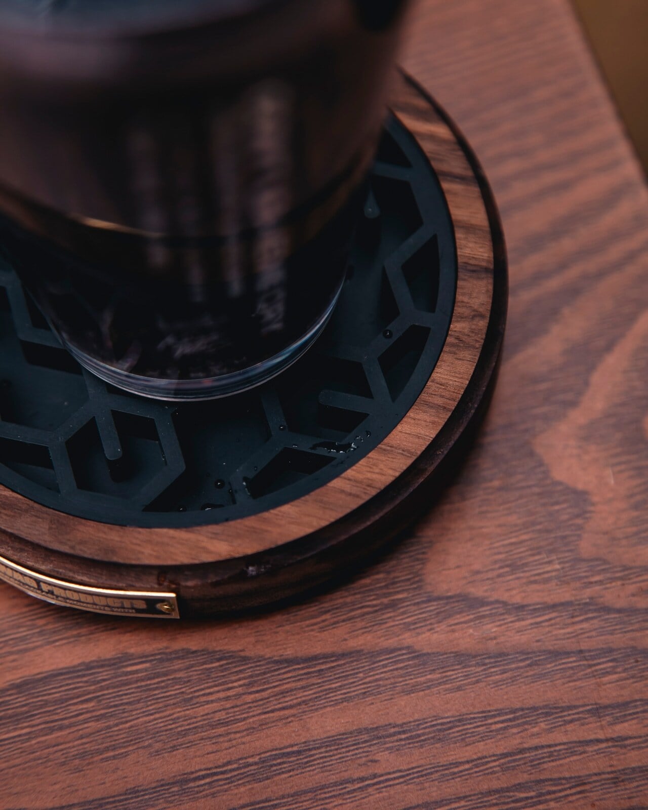 無垢ウォールナットに食品グレードのシリコーンで制作したバーマットを埋め込みました。